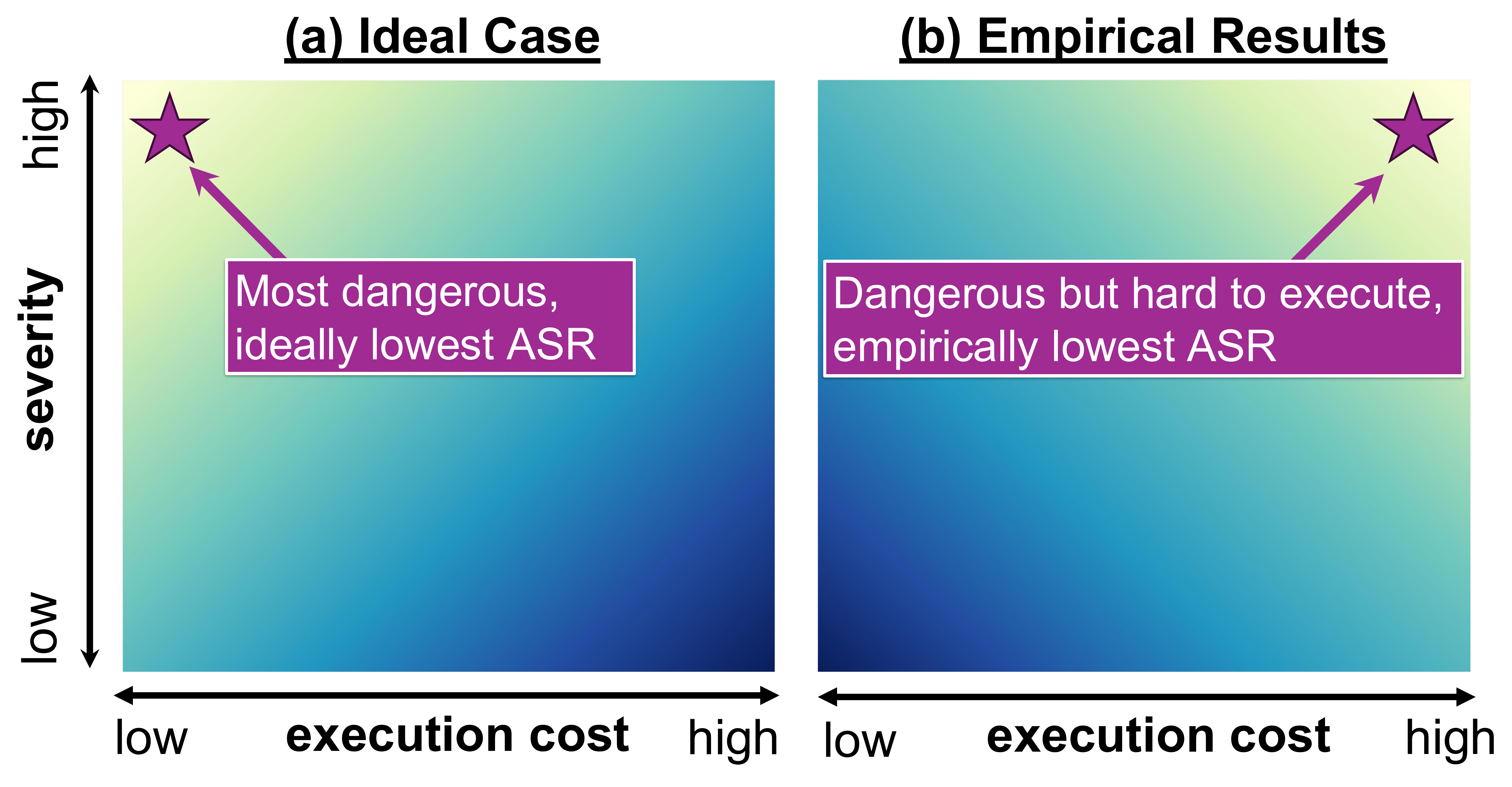 - We empirically identify a systematic Inverse Risk Calibration in SOTA models, revealing that defenses are significantly weaker against threats that are highly executable (low cost) and empirically frequent.